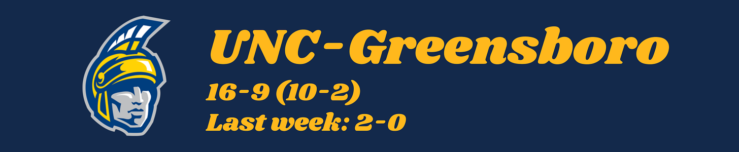 Furman is probably in the best position to avoid an upset out of the top three. Before their season-ending visit to Samford, they’ve got two more road trips to the SoCon’s worst (VMI) and second-worst (The Citadel) teams. WCU, ETSU, and Mercer will all pose a bit more of a challenge in Greenville, but Torvik doesn’t project the Paladins for so much as a one-score win until they head to Pete Hanna Center. If they keep playing at the level they’ve reached recently, they can put the pressure on UNCG and Samford to keep up. But even with that favorable late schedule, the season could easily hinge on their February 25 meeting with the Bulldogs.