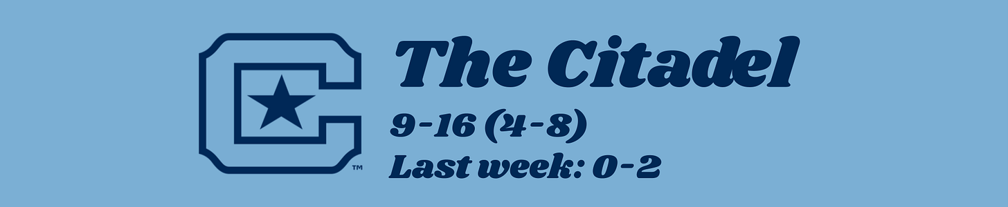 A game of separation feels like nothing in this scramble for fourth, especially considering that WCU will be an underdog four more times this season—road games against Wofford, Furman, Mercer, and UNCG—and only a narrow favorite at home against ETSU. But the Catamounts deserve their flowers for, at least for now, clawing their way into this spot despite being written off in the preseason as a likely play-in candidate. They’re one of just two teams to beat the Paladins, and they’ve put up a good fight against Samford in both of their meetings; they’ll need more spirited performances like that to hold fourth, but it’s not out of the question.